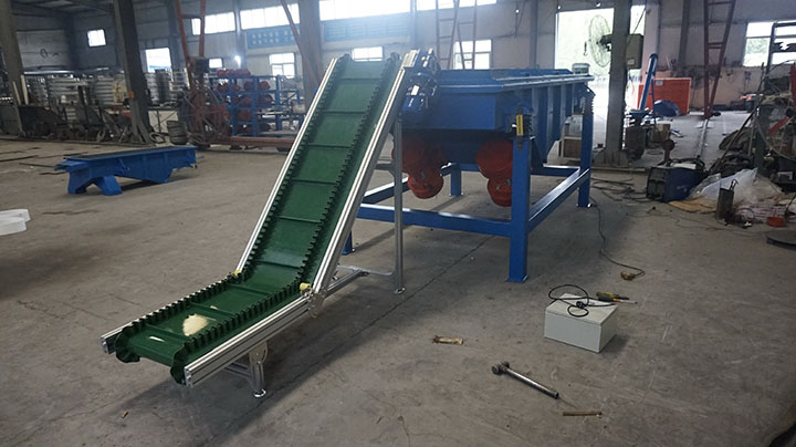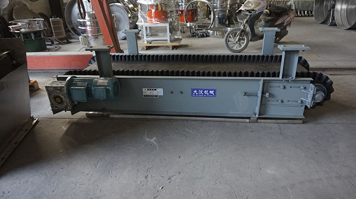 由波紋擋邊帶、基帶橫隔板、機頭傳動滾筒、驅(qū)動裝置、改向壓輪、擋邊輪、振打器等組成。